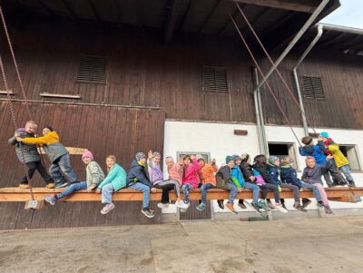 Der Besuch beim Kirtahutschn am Daurerhof stellte auch in diesem Jahr wieder einen besonderen Höhepunkt für die ersten und zweiten Klassen dar. Freudig traten die
