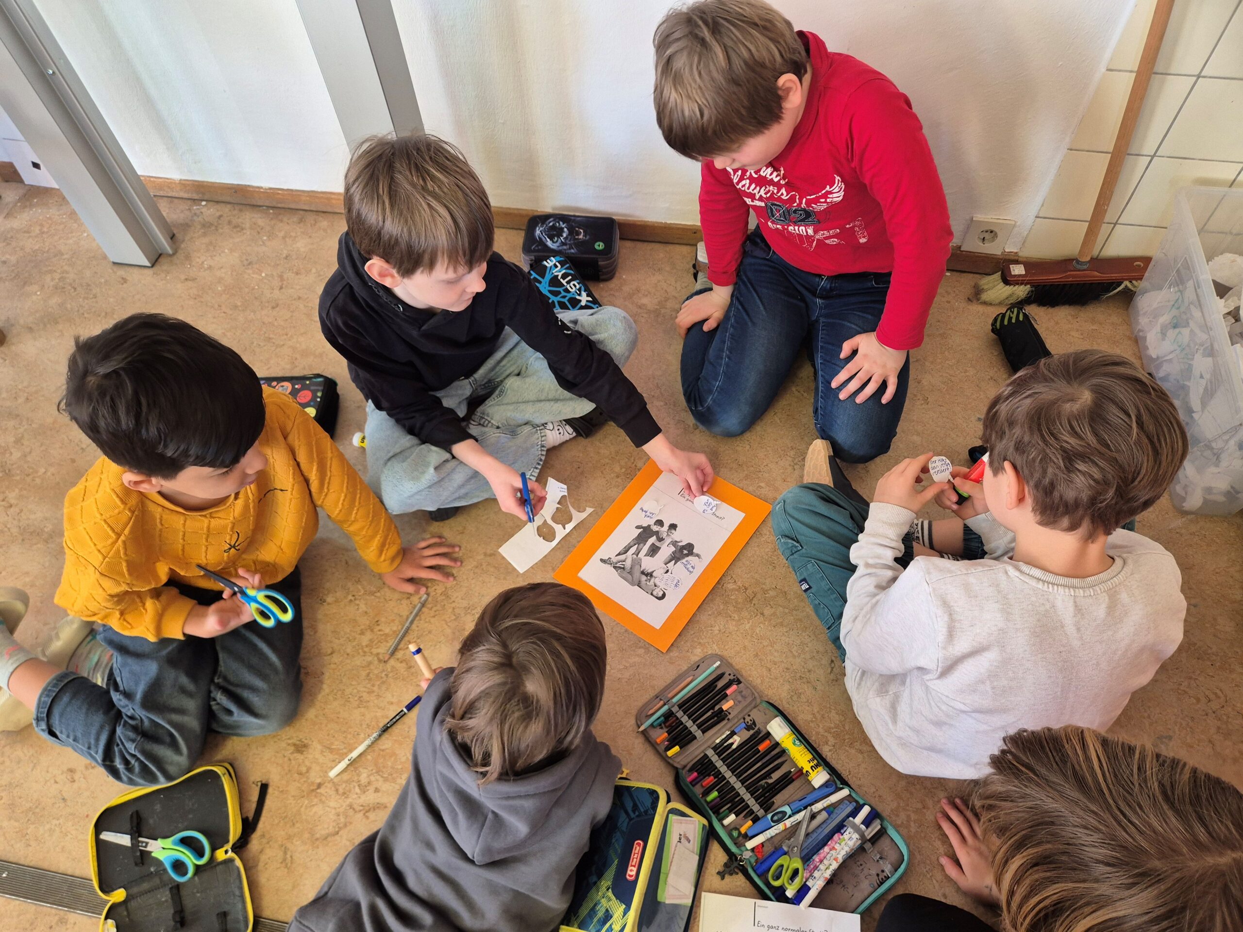 Die Schülerinnen und Schüler arbeiteten sehr motiviert und engagiert in drei Gruppen. Gemeinsam erarbeiteten sie anhand anschaulicher Beispiele den Unterschied zwischen einem „normalen“ Streit und Mobbing. Dabei wurde deutlich: Ein Streit entsteht meist spontan und beide Seiten sind beteiligt, während Mobbing über einen längeren Zeitraum hinweg geschieht und sich gezielt gegen eine Person richtet.